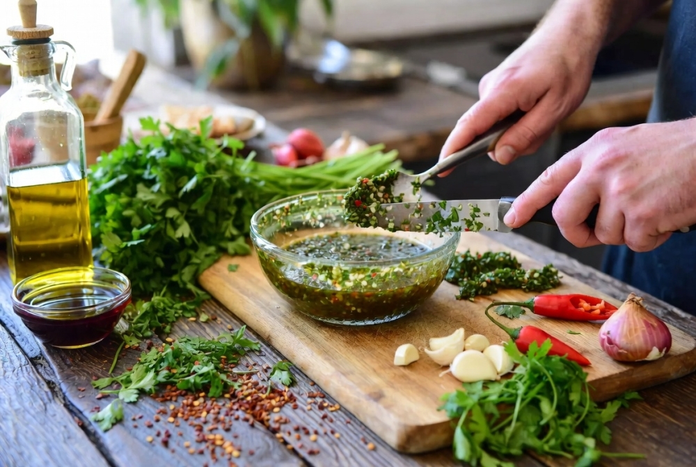 Geduld: Wil je de beste chimichurri maken? Laat de saus dan minimaal 2 uur staan voordat je gaat eten. De smaken trekken dan diep in de olie.